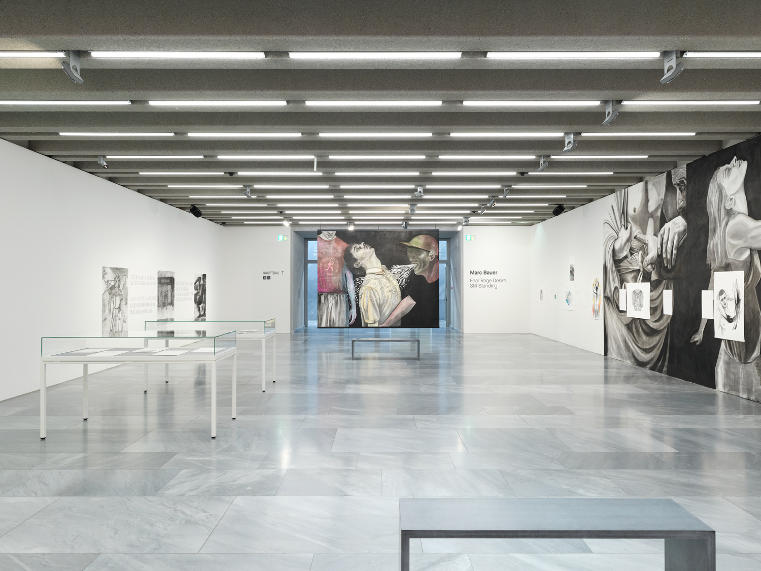 In this solo project at the Kunstmuseum Basel, Marc explores history, memory, gender and identity from a queer perspective. For this project, he examines the construction of masculinity and the resulting violence that society, and queer people in particular, are confronted with. Making links from the past to the present, Marc talks about deeply this violence is anchored in social structures.
