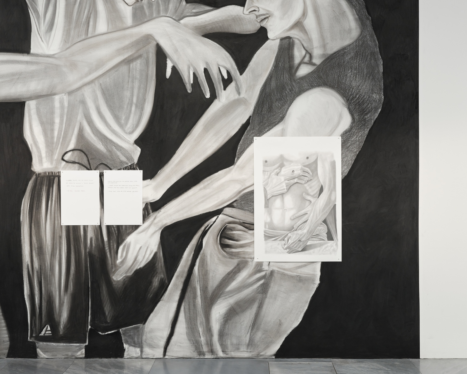 In this setting Marc made a wall filling wall drawing in charcoal.